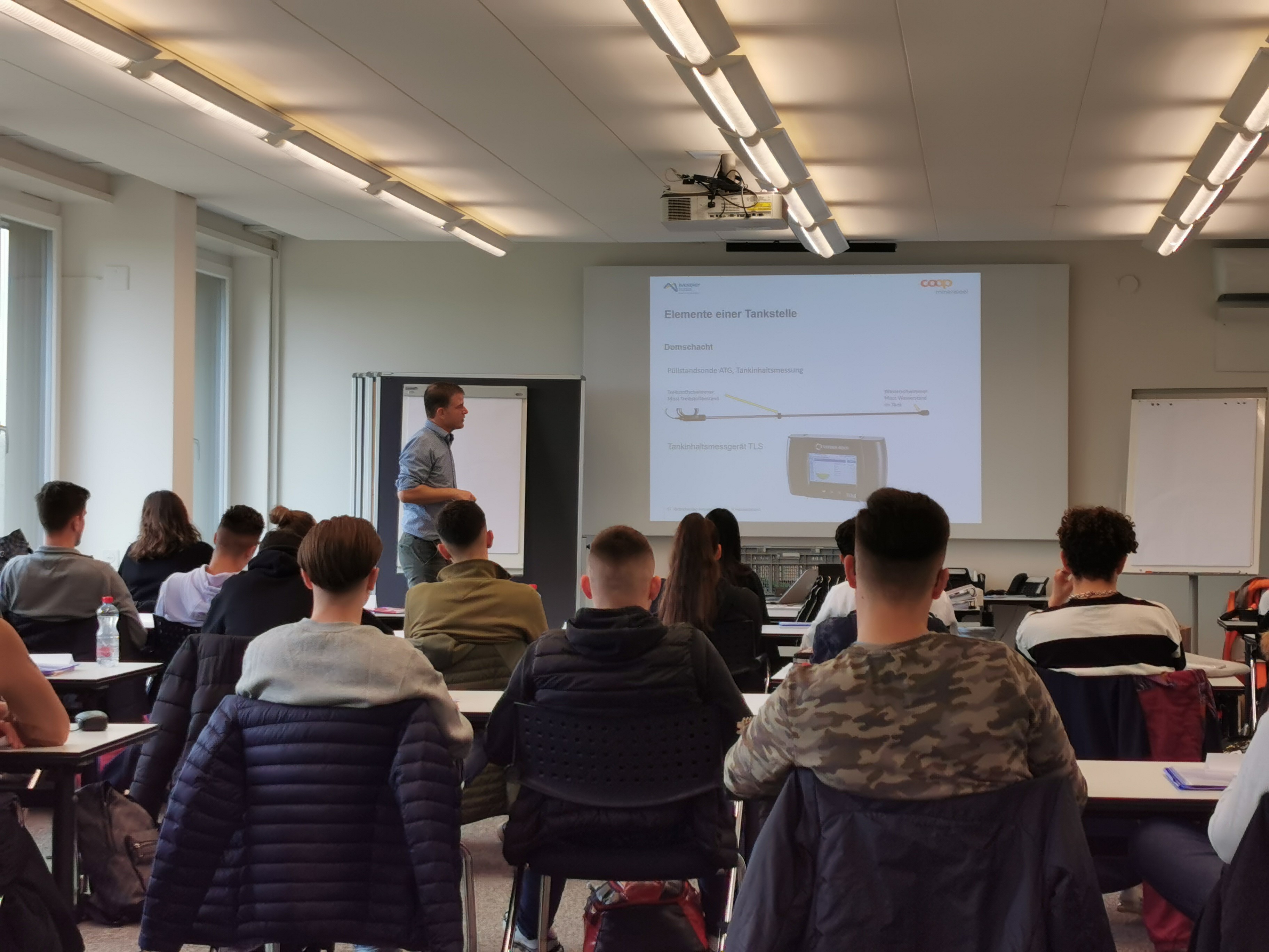 Les réponses à ces questions et à d'autres questions sur la branche seront données aux apprentis du réseau d'entreprises de formation pendant le cours sur la branche. Le programme comprend la visite d'une station-service avec un regard dans les coulisses et la visite du port du Rhin de Bâle.